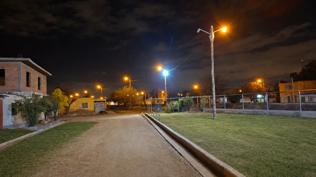 Ariel Gutiérrez, subsecretario de Servicios Públicos, explicó que “los trabajos realizados incluyeron la colocación de 16 luminarias y la instalación de 12 postes, lo que permitirá que vecinos y vecinas puedan utilizar la cancha en horarios nocturnos de manera segura”.